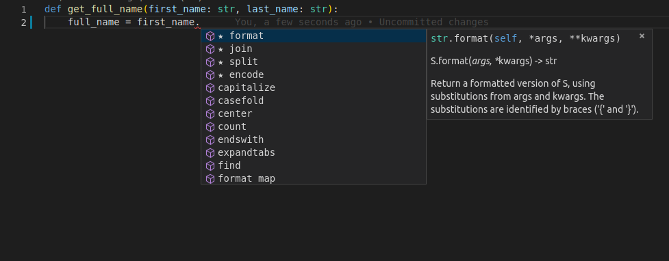 پارامتر اول تابع، first_name رو تایپ می‌کنی، بعد یه نقطه (.) می‌ذاری و Ctrl+Space رو می‌زنی تا تکمیل خودکار بیاد.