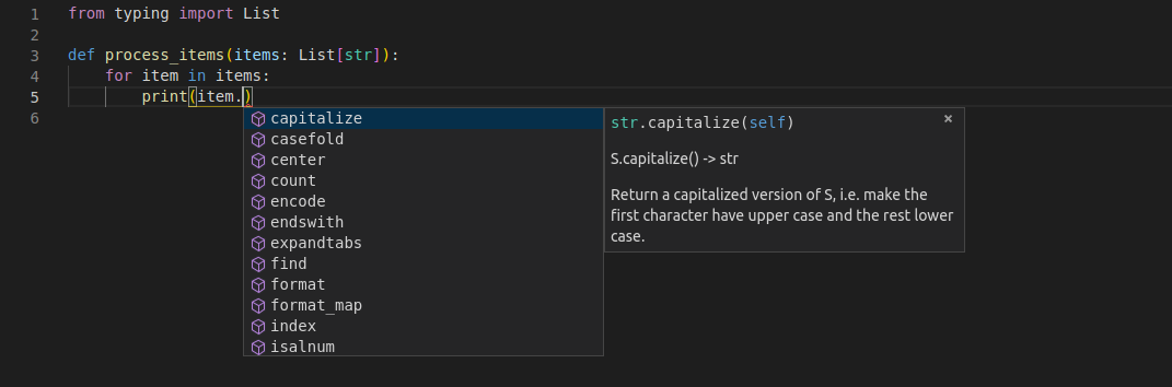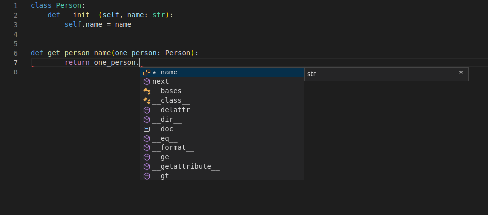 چون ویرایشگر نوع متغیرها رو می‌دونه، فقط تکمیل خودکار نمی‌گیری، بلکه چک خطاها هم داری: